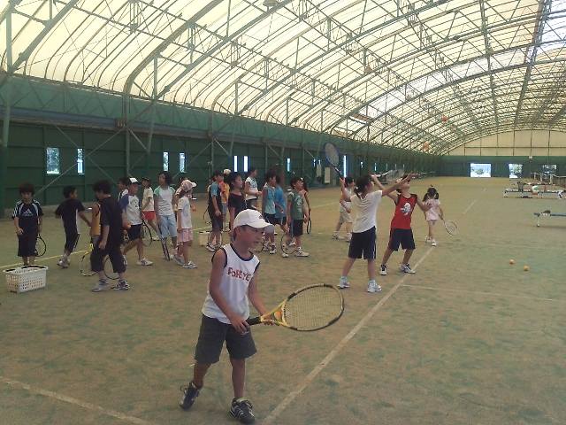 そして午前中はテニス!スポンジボールで対戦!北竜台校のジュニアはスポンジボールが初めてで、戸惑っていましたが一生懸命頑張っていました!そのあとのサーブの的当ては、見事に当ててオオクワガタをゲットしたジュニアがいました!おめでとう!