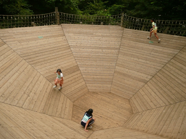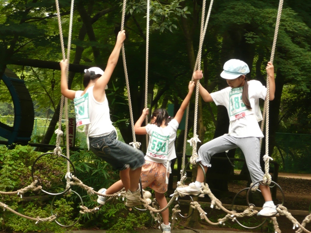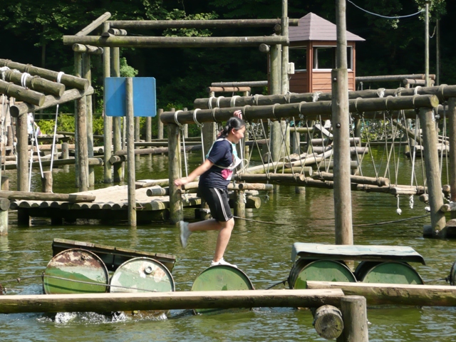 清水公園のフィールドアスレチックは、家族で楽しめるファミリーコース、勇気と挑戦の冒険コース、スリルいっぱいの水上コースなど全部100ポイントあるコースです。思いっきり遊びながら自分の力を試してみよう!