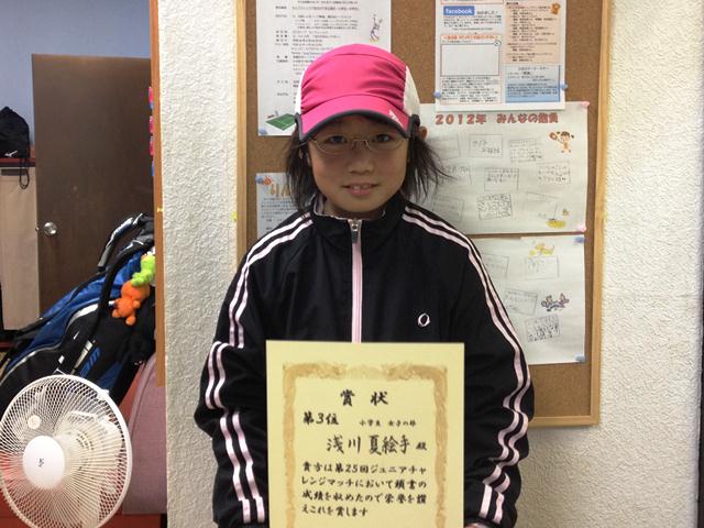 申智淏さんが、ありのみカップでベスト4! グレード4C大会の ありのみカップジュニアテニストーナメント2012春が行われ、 12歳以下女子シングルスで、 申智淏さんが、ベスト4に入賞いたしました! 智淏さんのコメント 「公式戦でベスト4に入って嬉しいです。負けた人にも、勝つように頑張ります。」