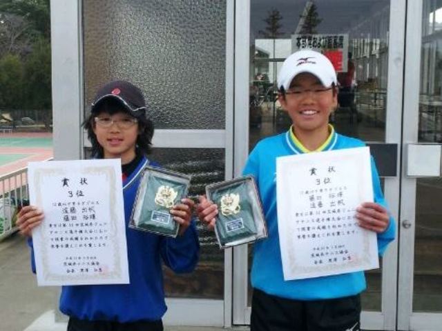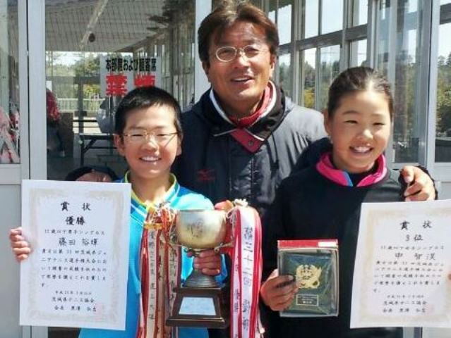 シングルス14名、ダブルス7組が関東大会出場決定!茨城県ジュニアテニス選手権 試合結果 3月24日~31日に 第33回茨城県ジュニアテニス選手権が行われ、 各年齢別で優勝・準優勝など上位の好成績を収め、過去最多となる シングルス14名、ダブルス7組の関東大会の出場が決定しました。 <18歳以下> シングルス 男子 優勝 韓成民くん(ワールドツアークラス) 女子 3位 押野紗穂さん(ワールドツアークラス) ダブルス 女子 3位 押野紗穂さん(ワールドツアークラス) <16歳以下> シングルス 男子 準優勝 神田留尉くん(ワールドツアークラス) 4位 黒澤陸人くん(ワールドツアークラス) 5位 渡邉裕輝くん(ワールドツアークラス) 女子 優勝 関怜莉さん(ワールドツアークラス) ダブルス 男子 優勝 渡邉裕輝くん(ワールドツアークラス) 3位 神田留尉くん・黒澤陸人くん(ワールドツアークラス) <14歳以下> シングルス 男子 優勝 申乾浩くん(ワールドツアークラス) 準優勝 丹下将太くん(ワールドツアークラス) 7位 大島一将くん(ワールドツアークラス) 女子 4位 押野実柚さん(ワールドツアークラス) ダブルス 男子 準優勝 大島一将くん・中野太悟くん(ワールドツアークラス) 4位 丹下将太くん・申乾浩くん(ワールドツアークラス) <12歳以下> シングルス 男子 優勝 藤田裕暉くん(ワールドツアークラス) 5位 遠藤出帆くん(トーナメントクラス) 女子 3位 申智淏さん(ワールドツアークラス) 5位 浅川夏絵手さん(トーナメントクラス) 9位 五十嵐萌々さん(トーナメントクラス) ダブルス 男子 3位 藤田裕暉くん・遠藤出帆くん(ワールドツアー・トーナメントクラス) 女子 3位 申智淏さん・浅川夏絵手さん(ワールドツアー・トーナメントクラス)