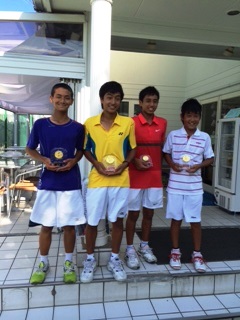 ダンロップ杯茨城ジュニア大会(G4C)14歳以下で単複優勝! 8/11~14に茨城県で、 第24回ダンロップ杯茨城ジュニア大会(グレード4C)が行われ、 14歳以下男子シングルスで、藤田裕暉くん(ワールドツアークラス)が優勝! 金東鉉くん(ワールドツアークラス)が準優勝し、ダブルスでも両名が組んで優勝いたしました! 12歳以下では、仙石圭汰くん(ワールドツアークラス)がベスト4に入賞しました。