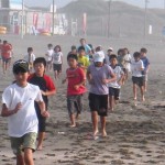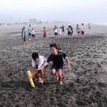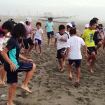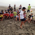 2日目、朝の天気は良好! 海岸でのイベントはご覧のとおり、充実した内容で全員が全力を出して頑張りました。ホテルと浜の移動も例年になくスムース!声がかれることもなかった。九十九里の朝はいいですよ!
