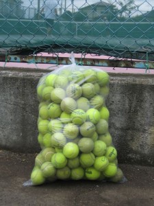 『ボール拾ったんだけど…』 クラブハウスの外で、おじさんが手招きしていました。 出て行くと、そこには自転車のカゴと荷台に山のように積まれたテニスボール。 『毎朝、犬を連れてこの近くを散歩するんだけど…犬がボールを拾うんだよね!』 『けっこう溜まったから持って来たんだよ!』 どのくらい前からですか?? 『10年かな…』 じ、じゅうねん…………… もちろんボールはもう使えないけど、せっかく持って来てくれたので気持ち良く引き取ることにました。 北竜台の10年が詰まってます!!