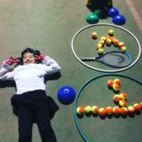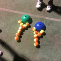 テーマ「ものづくり」道具やラケット・ボール色々な物を使いコーチがお題をテニスラケット(図1)ともう一つクリスマスの物(図2)と