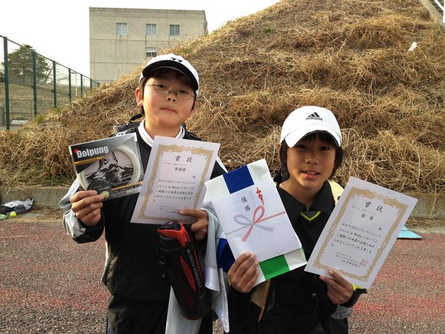 トーナメントは抽選で場所を決めたのですが、1試合多い場所に入った選手が 「1試合多くできてうれしい!」と言ってそのまま優勝しました! テニスはやはりメンタルが大切なスポーツですね。 試合結果はこちら▼ ・KCJOpen2012inWinter試合結果(PDF) Aクラス 1位トーナメント 優勝 猪瀬瑞希さん 準優勝 長門桃子さん 2位トーナメント 優勝 齊藤里穂さん 準優勝 園城海遥さん 3位トーナメント 優勝 北原優輝くん 準優勝 櫻庭泰輔くん