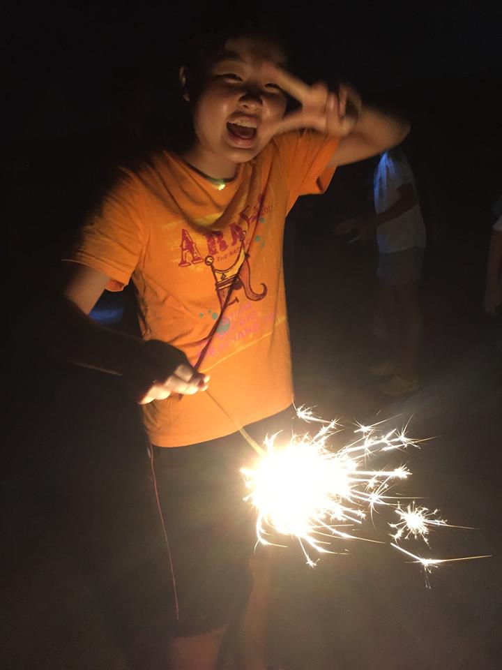 夜になって、海の近くで花火をして、場所を移し暗い道の中で、ろうそくの火を頼りに、宝探しをしました。 子供たちの集中力と、洞察力にはホントに驚きで、まっくろに染めた小さいものや葉の裏に隠したものなど 見つけるの難しいどろうなぁ~と思うようなものをいとも簡単に見つけてしまうのです。 子供達の計り知れないパワーを感じることができました!(子供ってスゴイ…)