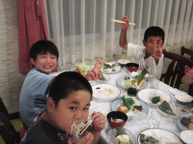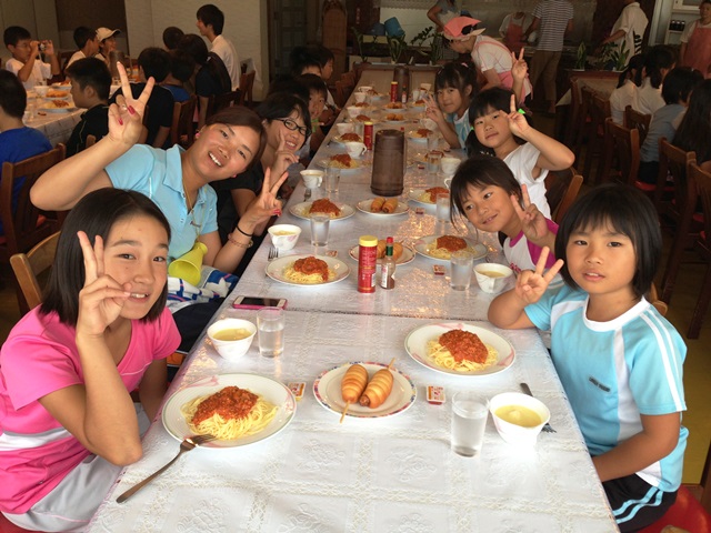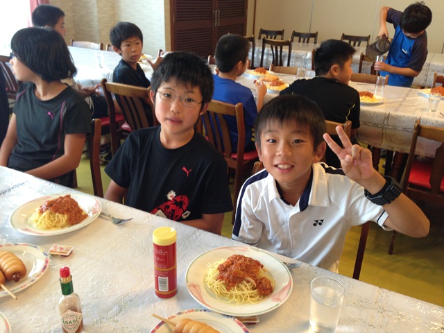ここの食事はなかなか豪華です。子供たち向けとはいえ食べきれない子がほとんど。今年は野菜嫌いが思ったより少なくて…