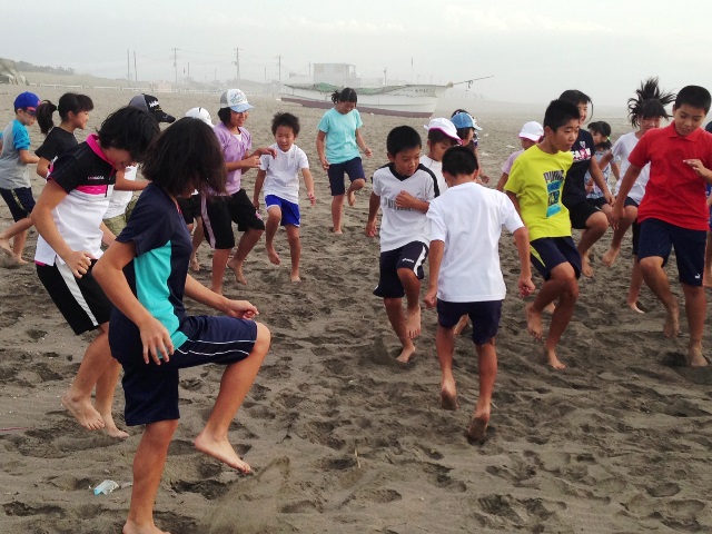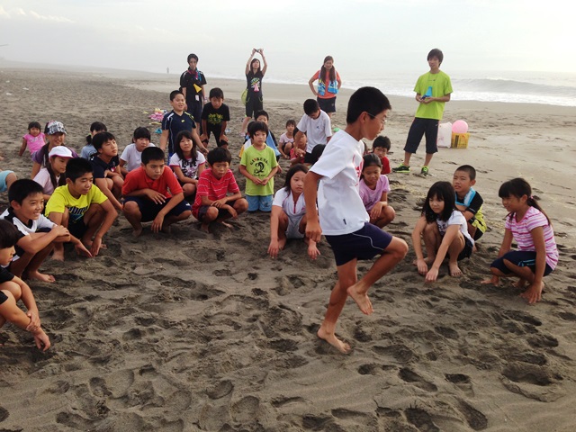 2日目、朝の天気は良好! 海岸でのイベントはご覧のとおり、充実した内容で全員が全力を出して頑張りました。ホテルと浜の移動も例年になくスムース!声がかれることもなかった。九十九里の朝はいいですよ!