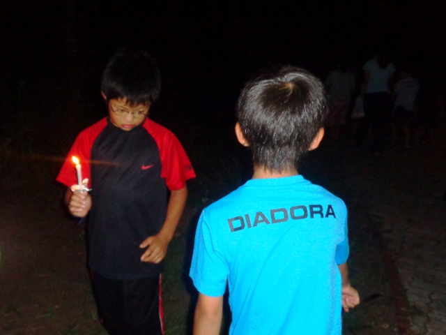 悩みに悩みましたが風が思った以上に強く、夜のイベントでは「花火」を中止にしました。宝探しも中止?と思いましたが子供たちの強いリクエストでとりあえずやってみることに。 過去のこのイベントでの最高の楽しさからは程遠かったものの何とかやり終えました。おかげで次回の風対策が立てられました。子供たちが賞品を嬉しそうにもらってくれたのが何よりでした。
