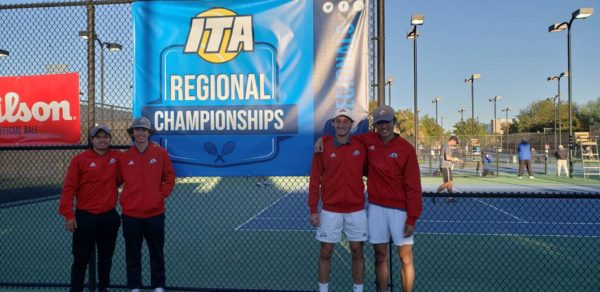 申 乾浩選手:去年のMVP選手に勝利! 申 乾浩選手が、大学の『ITA regional championships』という大会に、シングルスは本戦から、ダブルスは予選を勝ち抜き本戦出場を決めました!本戦では、残念ながら両種目とも一回戦負けしてしまいましたが、シングルスのコンソレーションで今大会第5シードで、去年MVP賞をとった選手相手に勝ち星を収めることができました!!!写真:右端 申選手