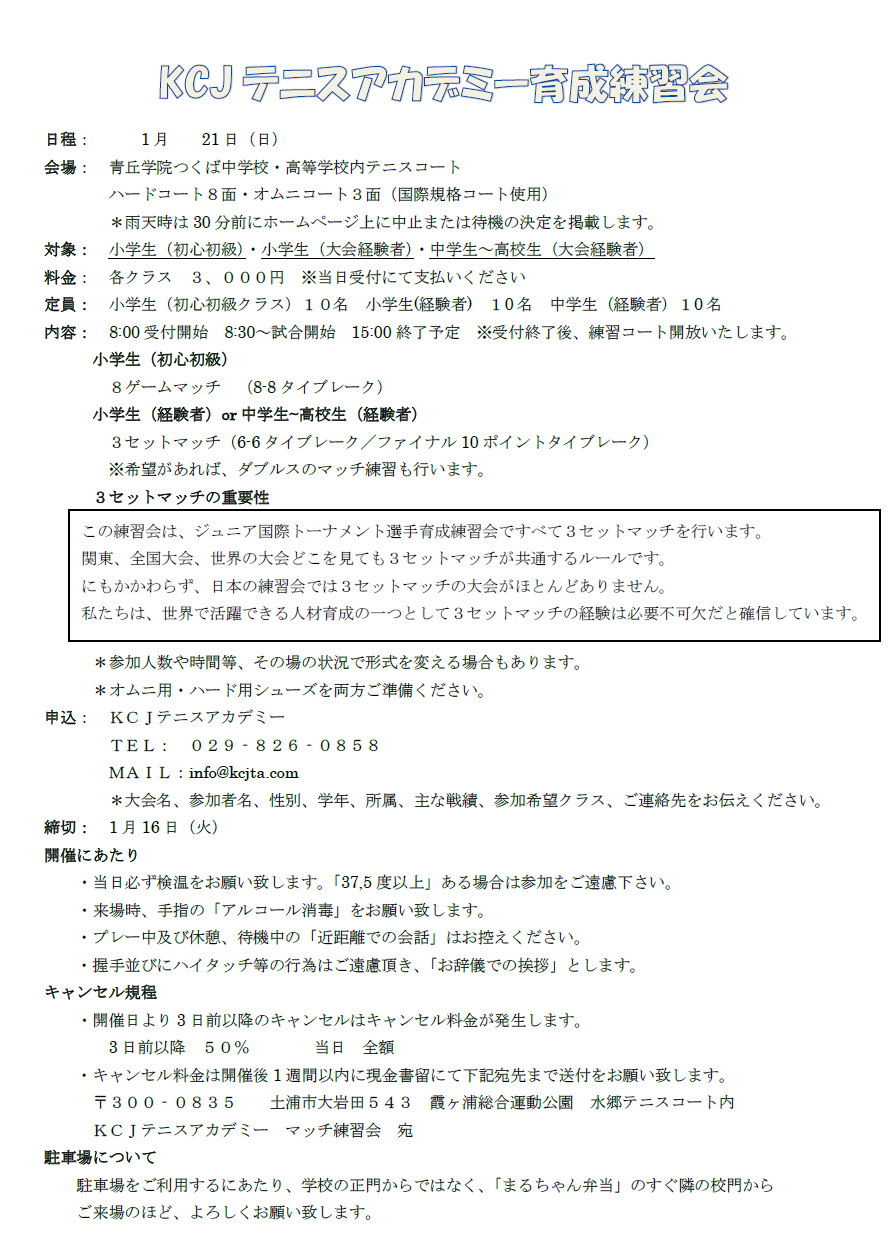 KCJテニスアカデミー育成練習会(3セットマッチ) 1月21日