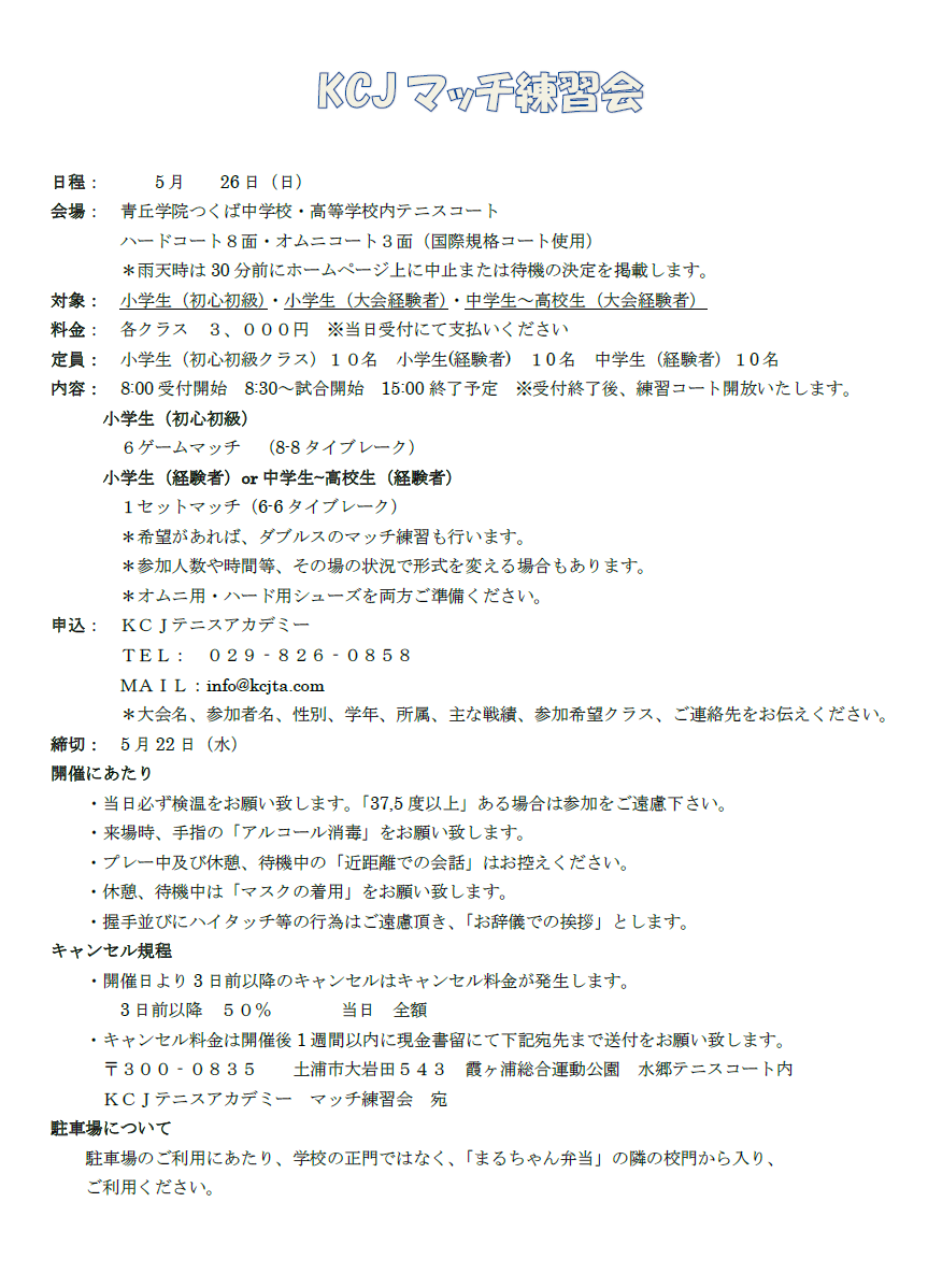 12月29日 試合で勝つために必要な「集中力」が身に付くマッチ練習会