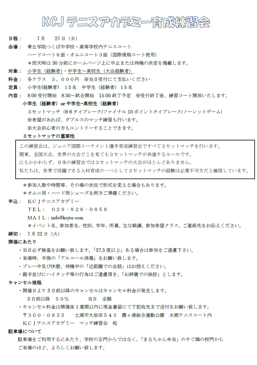 KCJテニスアカデミー育成練習会