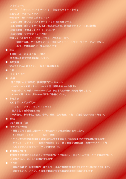 12月29日 試合で勝つために必要な「集中力」が身に付くマッチ練習会