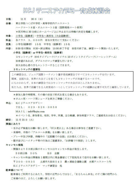 KCJテニスアカデミー育成練習会