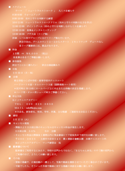 KCJテニスアカデミー育成練習会開催中止のお知らせ