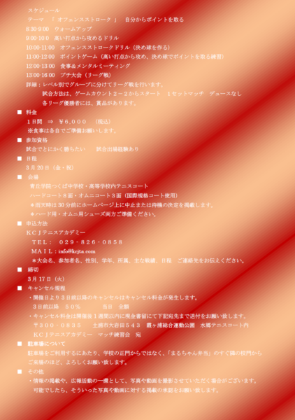 KCJCAMP テーマ「70攻める 30守る ニュートラルテニス」