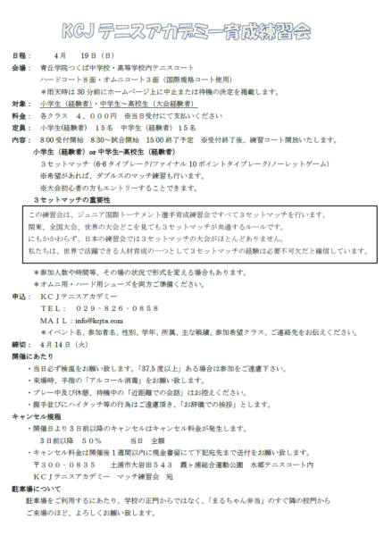 KCJテニスアカデミー育成練習会