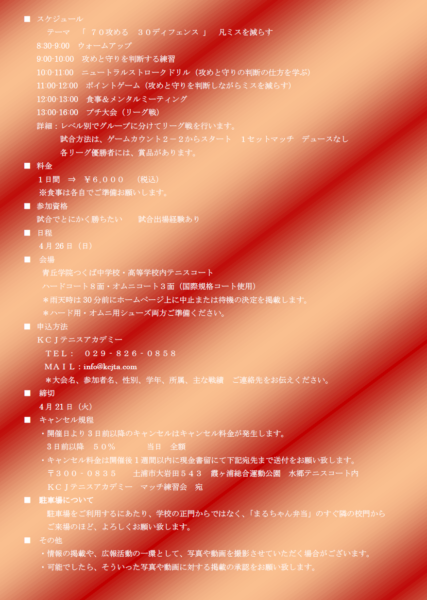 KCJCAMP テーマ「70攻める 30守る ニュートラルテニス」