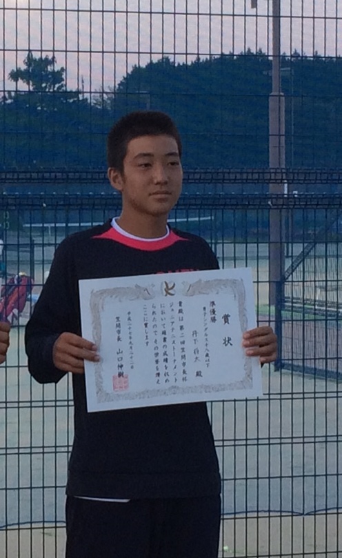 先月から快進撃を見せる中学3年生の丹下将太くんが、一個上の年齢である18歳以下の部で出場。 周りがみな高校生という年上のなか、 一回戦から今大会第3~4シードであり、 現茨城県高校NO.1選手とあたるタフなドロー。 そんな環境の中、一回戦… なんと、6-4と勝利しました!!!! 先月の全日本中学生での経験が自信に結びついた結果なのではないでしょうか? 続く、準々決勝、準決勝と6-2、6-3と勝ち上がり決勝へ 決勝では、1-6で負けてしまいましたが、 回りが、年上の選手しかいないなか、強敵を下し、準優勝という結果は、 本人にとって十分自信に繋がったのではないでしょうか? これからの丹下将太くんの活躍を応援しています。